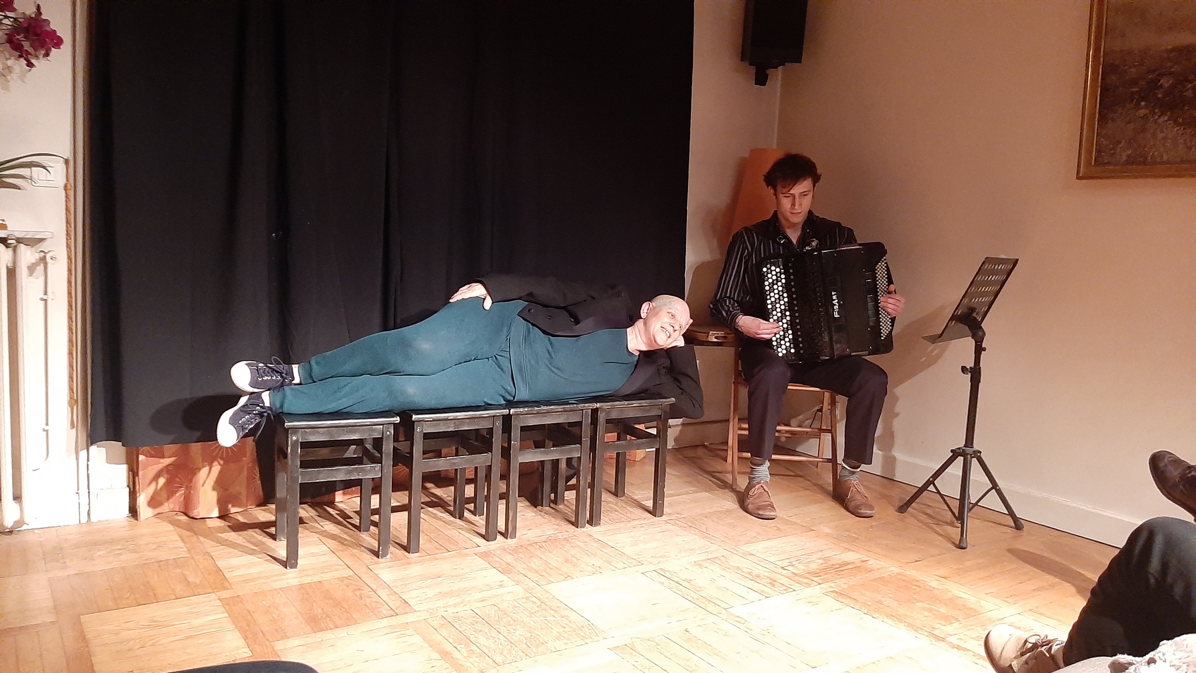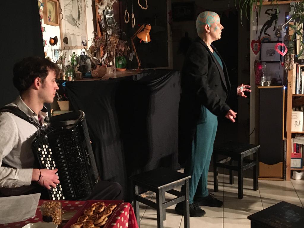 Avec seulement quatre tabourets, les sons d’un accordéon et un humour un tantinet absurde, nous tenons le gage de vous faire sourire et rire de cet univers pas si loin de nos réalités ! Bref, rire de nous même, de nos contradictions…